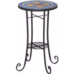 Outsunny 35.5cm Round Mosaic Garden Side Table Plant Stand w/ Shelf - Blue | TJ Hughes