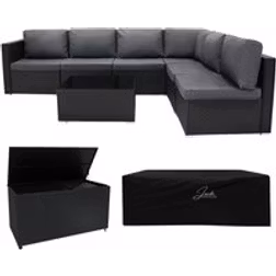 Jardi Serafina Rattan Modular 7 Piece Furniture Set & 700L Storage Box - Black, Black