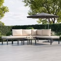 CHARLES BENTLEY Lounge Set, Multifunctional, Aluminium, Corner Sofa, Anthracite Frame, Beige Cushions, Multi Function, Reclining, UV Resistant,