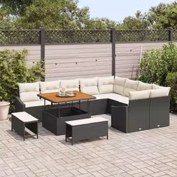 vidaXL 12 Piece Garden Sofa Black Poly Rattan Acacia Outdoor Lounge Set