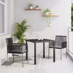 vidaXL Garden Dining Set 3 pcs Black Poly rattan