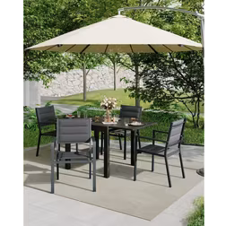 Aluminum Stackable Patio Dining Chairs Set of 4,Stacking Outdoor Dining Chairs for All Weather with Textilene Farbic for for Outdoor, Patio, Deck, Bac - Grey (37cm H X 21.26cm W X 29.13cm D)