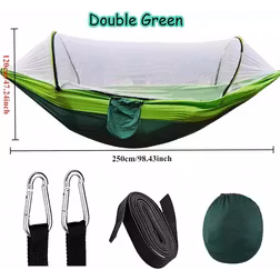 (Double Green) Outdoor Camping Hammock High Strength Parachute Fabric With Mosquito Net Lightweight Hanging Hammocks Hanging Bed Net 250x120cm