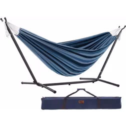 Vivere UHSDO8-34 Double Cotton Hammock with Space-Saving Steel Stand Including Carrying Bag, Blue Lagoon