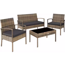 Garden Furniture Set Sparta - seats 4, 2 chairs, 1 sofa, & 1 coffee table - nature