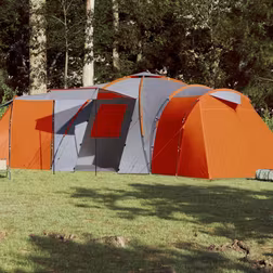 vidaXL Family Tent Dome 12-Person Grey Orange Waterproof