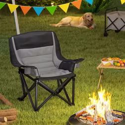 Outsunny Camping Chair For Adults - Padded Folding Chair - Green/Grey - Grey | TJ Hughes