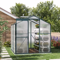 6ft à 6ft Greenhouse Polycarbonate Aluminium Greenhouse with Window, Sliding Door, and Foundation