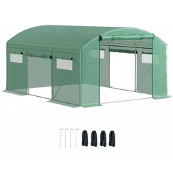 Outsunny Polytunnel Greenhouse with 3 Roll-up Doors - Green - 4m | TJ Hughes