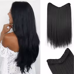 SHEIN Hair Extensions Black Clip In Hair Extensions 16~32 Inch Straight Black Hair Extensions Synthetic V Hair Extension Suitable For Various Occasions Incl