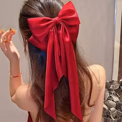 Shein Women's Oversized Long Red Satin Bow Hair Clip