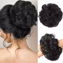Shein Synthetic Curly Hair Bun With Rubber Band Black Donut Updo