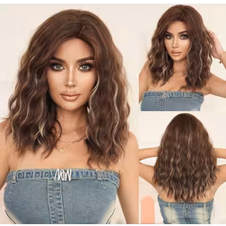 Shein Medium Length Wavy Brown Side Bangs Mixed Blonde Highlight Hairpieces