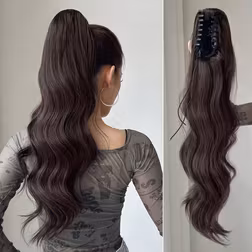 Shein Claw Ponytail Extension Hair Brown Inch Long Natural Water Wave Heat Resistant Fiber Synthetic Hairpiece For Girl Women