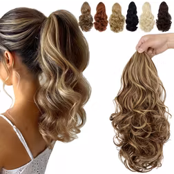 "FELENDY 15"""""""" Ponytail Extension Drawstring Curly Wavy Ponytail Extensions Clip in Long Pony Tails Hair Cute Synthetic Piece for Women Light Brown"