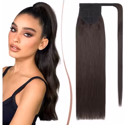 Elailite Human Hair Ponytail Extension Straight - Wrap Around Clip in Real Hair Ponytail 100% Remy Hair (#2 Dark Brown, 14 Inch)