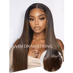 UNice Bye-Bye Knots 7x5 & 13x4 Lace Black to Chestnut Brown Ombre Yaki Straight Wig With Invisi Drawstring