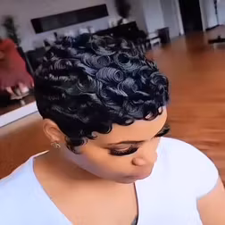 SHEIN [Brazilian Remy Human Hair Wig] Chic Curly Wave Short Kinky Curly Wave Human Hair Wigs For Women's Brazilian Remy Human Hair Wig, Seamless Fit, Gluele