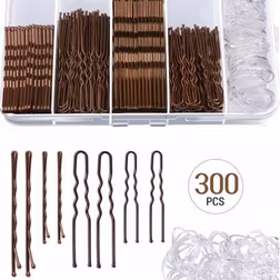 SHEIN 300pcs Bobby Pins Set, Metal Hair Pins Women's Hair Accessories, French U Hair Pins 2inch 2.36inch, Hair Pins For 2inch 2.75inch, Hair Ties In A Stora