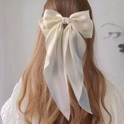 SHEIN 1Pc Beige Hair Bow With Long Tail Hair Barrette Hair Ribbon Cute Bow Hair Clip Hair Accessories For Girls Teens Kids Daily Wear