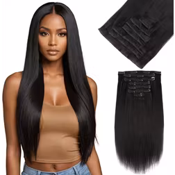 Yuniffe Yaki Straight Clip in Hair Extensions 1B Natural Black