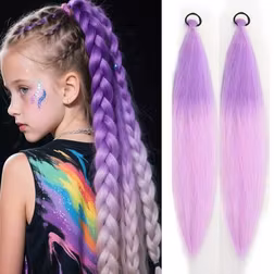 SHEIN 26Inch Halloween Kids Extension Purple Ombre Colorful DIY Braiding Hair Extensions Synthetic Long Yaki Straight Heat Resistrant Fluffy Ponytail Extens
