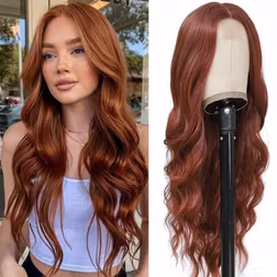 SHEIN 26 Inch Elegant Long Dirty Orange Curly Wavy U Part Lace Synthetic Wig For Women - Heat Resistant Fiber, Natural Middle Part, Full Volume, For Daily W