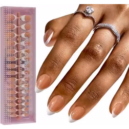 SHEIN 150Pcs Short Almond French Gel Nails - Nude French Pointed Nail Tips, Short Almond Nail Shapes, Soft Gel False Nails, Soakable Acrylic Nail Extensions