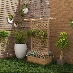 Outsunny Wood Planter with Trellis, Raised Garden Bed Privacy Screen Planter Box to Grow Vegetables, Herbs and Flowers for Garden, Patio, Deck, Natural