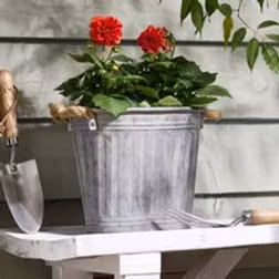 Dibor Traditional Medium Ribbed Metal Flower Plant Pot Garden Planter