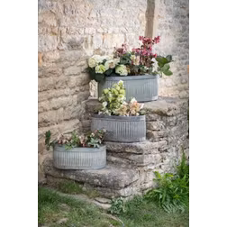 Garden Trading 3 X Vence Oval Troughs Flower Planters Pots Metal Steel - One Size