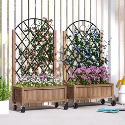 OutSunny Pack of 2 Wooden Raised Bed with Metal Trellis