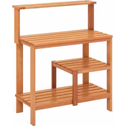 COSTWAY Garden Potting Bench Table with Open Shelves and Teak Oil Finish, Brown