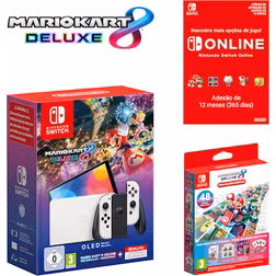 Nintendo Switch – OLED Model (White) + Mario Kart 8 Deluxe + Nintendo Switch Online Individual 12-Month (365-Day) Membership + Mario Kart 8 Deluxe: Booster Course Pass Set
