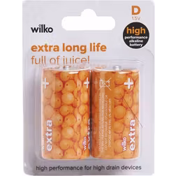 Wilko Extra Long Life D 2 Pack 1.5V Alkaline Batteries