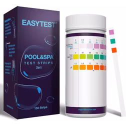 EASYTEST Hot Tub Test Strips, 150 Strips Pool and Spa Test for pH,Total Alkalinity,Free Chlorine and Bromine, Accurate 3 in 1 Pool Water Testing Kit