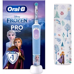 This electric toothbrush cleans your teeth properly. This particular model is blue and it also comes with a charging station.