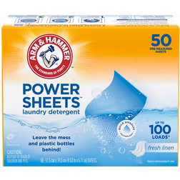 Arm & Hammer Power Sheets Laundry Detergent Fresh Linen 50ct up to 100 Small Loads (Packaging may vary)
