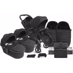 Sibling Stroller, Adjustable Handle, Bumper Bar, Extendable Sun Canopy, Rain Cover, Full Recline, Storage Basket, Black