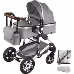 Pram, Storage Basket, Adjustable Footrest, Extendable Sun Canopy, Grey