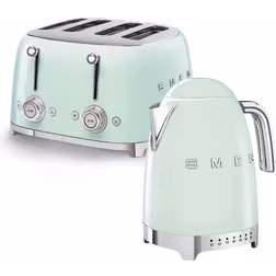 Smeg 1.7L 3Kw Variable Temperature Jug Kettle & 4 Slice Toaster Set Pastel Green in Light Green - One Size