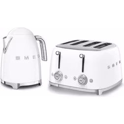 Smeg Kettle and 50's 4 by 4 Slice Toaster White Set