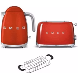 (Red) Smeg KLF03 Kettle + TSF01 Toaster + TSBW01 Bun Warmer Bundle
