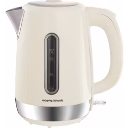 Morphy Richards Equip Kettle, 1.7L, 3Kw Rapid boil, Removeable Limescale Filter, Easy View Water Gauge, Stainless Steel Case, Cream, 102784