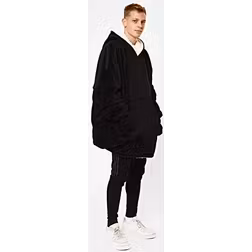 Sienna Hoodie Blanket Oversized Ultra Soft Plush Sherpa Fleece Wearable Warm Throw Hooded Blanket Cosy Giant Sweatshirt - Black