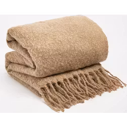 Teased Wool Soft Knit Tassel Fleece Blankets Grey, Beige, Pink, Silver (200x150cm)