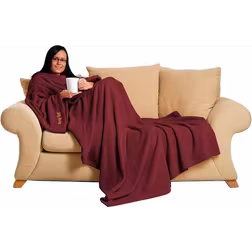 Mulberry Red Snug Rug Deluxe Blanket With Sleeves Luxury Cosy Super Soft Coral Fleece Fabric Long Oversized Pouch Pocket Adults - One Size