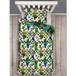 MINECRAFT Official Single Duvet Cover Set | Drawn Gaming Design Reversible 2 Sided Bedding Including Matching Pillow Case | Single Bed Set