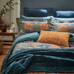 Morris & Co Honeysuckle and Tulip Double Duvet Cover Set Mulberry and Teal