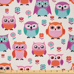 Czetli Owls Happy Hipster Fabric - Green (200cm L X 230cm W)